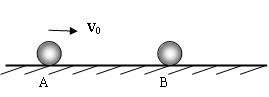 4、计算题 .如图所示,在水平面上B点的右侧为粗糙的,动摩擦因素为μ,左侧为光滑的。有一质量为m2的小球乙静止放在B点。另一个质量为m1的小球甲以速度v0从A向右运动,与乙球发生对心弹性碰撞后返回。碰撞时间很短,重力加速度为g.