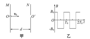 1、计算题 (14分)如图甲所示,MN为竖直放置彼此平行的两块平板,板间距离为d,两板中央各有一个小孔O、O′正对,在两板间有垂直于纸面方向的磁场,磁感应强度随时间的变化如图乙所示.有一群正离子在t=0时垂直于M板从小孔O射入磁场.已知正离子质量为m、带电荷量为q,正离子在磁场中做匀速圆周运动的周期与磁感应强度变化的周期都为T0,不考虑由于磁场变化而产生的电场的影响,不计离子所受重力.求: