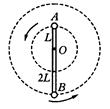 5、填空题 如图所示,轻杆长为3L=30cm,在杆的A、B两端分别固定质量均为m=