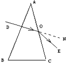由于三棱镜的顶角是30°可知,当光再次入射时,入射角为30°,而折射角则为60°,
