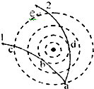 4、选择题 一带电粒子射入一固定在O点的点电荷的电场中,粒子运动的轨迹如图所示,图中实线是同心圆弧,表示电场的等势面,不计重力,可以判断 ( )