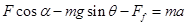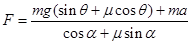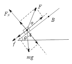 (2)设物块所受支持力为FN,所受摩擦力为Ff,拉力与斜面之间的夹角为α。受力分析如图所示,由牛顿第二定律得:?(1分)