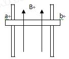 3、计算题 (7分) 有一根导体棒ab紧靠在竖直的两根导轨上,,如图所示.已知导体棒长L,质量为m,与导轨间的滑动摩擦因数为μ,磁感应强度为B.要使棒ab匀速下滑,应在ab中通入的电流大小和方向如何?