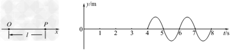 2、选择题 如图甲所示,一列沿x轴正方向传播的简谐横波,O点为振源,P点到O点的距离l=10m。t=0时刻O点由平衡位置开始振动,图乙为质点P的振动图像。下列判断正确的是
