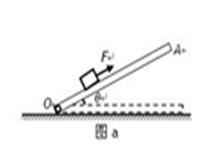 3、计算题  如图(a)所示,木板OA可绕轴O在竖直平面内转动,某研究小组利用此装置探索物块在方向始终平行于斜面、大小为F=8N的力作用下加速度与斜面倾角的关系。已知物块的质量m=1kg,通过DIS实验,得到如图(b)所示的加速度与斜面倾角的关系图线。图(b)中图线在的范围内与θ轴重合,且。假定物块与木板间的最大静摩擦力等于滑动摩擦力。(取sin37°=0.6,cos37°=0.8,g=10m/s2)
