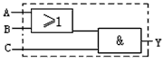 2、选择题 如图所示是一个三输入端复合门电路,当C端输入1,输出端Y输出1时,A、B端的输入分别不可能是( ? )