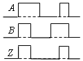 5、选择题 如图所示A、B分别表示某一个门电路两个输入端的信号,Z表示该门电路输出端的信号,则根据它们的波形可以判断该门电路是(? )