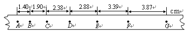 ⑶小车拖动纸带运动,打出的纸带如图所示.选出A、B、C、D、E、F、G,7个计数点,每相邻两点间还有3个计时点(图中未标出)。已知各点间位移。则: