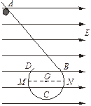 本题解析:由题目可知小球从静止A点释放,能沿挡板内侧运动到D点抛出,说明小球受合力一定是向下偏右,偏右的方向至少与AB平行,所以电场力一定向右且大于等于重力.所以AB正确.