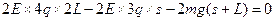2、计算题 如图所示,在真空中的竖直平面内,用长为2L的绝缘轻杆连接两个质量均为m的带电小球A和B,A球的电荷量为+4q,B球的电荷量为—3q,组成一带电系统。虚线MN与PQ平行且相距3L,开始时PQ恰为杆的中垂线。在MN与PQ间加竖直向上的匀强电场,恰能使带电系统静止不动。现使电场强度突然加倍(已知当地重力加速度为g),求: