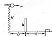 5、计算题 如图所示,水平屋顶高H=5m,墙高h=3.2m,墙到房子的距离L=3.6m,墙外马路宽S=8.4m,小球从房顶水平飞出落在墙外的马路上,求小球离开房顶时的速度。(取g=10m/s2)