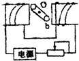 1、选择题 如图所示,ab是一个静止在电磁铁的两磁极间,可绕O轴转动的闭合导线框.当滑动变阻器的滑动片向右滑动过程中,线框将( )