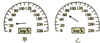 5、选择题 如图所示是汽车中的速度计.某同学在汽车中观察速度计指针位置的变化,开始时指针指示在如图甲所示的位置,经过7s后指针指示在如图乙所示的位置,若汽车做匀变速直线运动,下列说法正确的有( )