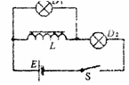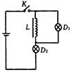 1、选择题 在图中,L是自感系数足够大的线圈,其直流电阻可以忽略不计,D1和D2是两个相同的灯泡,若将电键K闭合,待灯泡亮度稳定后再断开电键K,则(?)