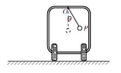 4、计算题 如图所示一辆箱式货车的后视图。该箱式货车在水平路面上做弯道训练。圆弧形弯道的半径为R=8m,车轮与路面间的动摩擦因数为μ=0.8,滑动摩擦力等于最大静摩擦力。货车顶部用细线悬挂一个小球P,在悬点O处装有拉力传感器。车沿平直路面做匀速运动时,传感器的示数为F0=4N。取g=10m/s2。⑴该货车在此圆弧形弯道上做匀速圆周运动时,为了防止侧滑,车的最大速度vm是多大?⑵该货车某次在此弯道上做匀速圆周运动,稳定后传感器的示数为F=5N,此时细线与竖直方向的夹角θ是多大?此时货车的速度v是多大?