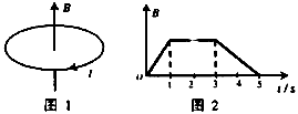 5、选择题  在竖直向上的匀强磁场中,水平放置一个不变形的单匝金属圆线圈,规定线圈中感应电流的正方向如图1所示,当磁场的磁感应强度B随时间t如图2变化时,下面四幅图中正确表示线圈中感应电动势E变化的是