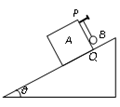 4、填空题 如图所示,固定在水平面上的斜面倾角为θ,长方体木块A质量为M,其PQ面上钉着一枚小钉子,质量为m的小球B通过一细线与小钉子相连接,小球B与PQ面接触,且细线与PQ面平行,木块与斜面间的动摩擦因数为μ。若木块匀加速下滑,则小球对木块的压力大小为____________.