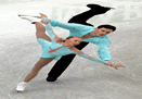 3、选择题 在都灵冬奥会上,张丹和张昊(如图所示)一起以完美表演赢得了双人滑比赛的银牌。在滑冰表演刚开始时他们静止不动,随着优美的音乐响起,在相互猛推一下之后他们分别向相反方向运动。假定两人与冰面间的动摩擦因数相同,已知张丹在冰上滑行的距离比张吴远,这是由于