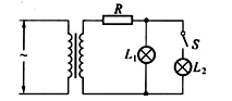 4、选择题 如图所示,理想变压器副线圈通过导线接两个相同的灯泡L1和L2。导线的等效电阻为R。现将原来断开的开关S闭合,若变压器原线圈两端的电压保持不变,则下列说法中正确的是?(?)