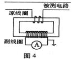 1、选择题 利用如图4所示的电流互感器可以测量被测电路中的大电流,若互感器原副线圈的匝数比,交流电流表A的示数是50mA则 (?)