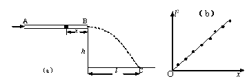 2、实验题 利用图A.实验可粗略测量人吹气产生的压强。两端开口的细玻璃管水平放置,管内塞有潮湿小棉球,实验者从玻璃管的一端A吹气,棉球从另一端B飞出,测得玻璃管内部截面积S,距地面高度h,棉球质量m,开始时的静止位置与管口B的距离x,落地点C与管口B的水平距离l。然后多次改变x,测出对应的l,画出l2-x关系图线,如图B.所示,并由此得出相应的斜率k。
