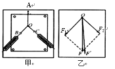 2、实验题 “研究共点力的合成”的实验情况如图甲所示,其中A为固定橡皮筋的图钉,O为橡皮筋与细绳的结点,OB和OC为细绳,图乙是在白纸上根据实验结果画出的图示。
