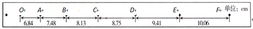 4、实验题 在做“研究匀变速直线运动”的实验时,某同学得到一条用打点计时器打出的纸带。并在其上取了O、A、B、C、D、E、F 7个计数点(每相邻两个计数点间还有4个打点计时器打下的点。本图中没有画出)打点计时器用的是220V、50Hz的交流电源。