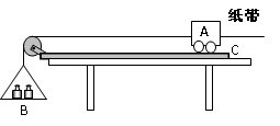 3、实验题 (8分)如图所示为“探究加速度与物体受力和质量的关系”实验装置图。图中A为小车,B为装有砝码的小桶,C为一端带有定滑轮的长木板,小车A后边连接着纸带,纸带可由接了50 HZ交流电源的电火花打点计时器打出点迹。小车(含小车上放的砝码)的质量为m1,小桶(含桶内放的砝码)的质量为m2。