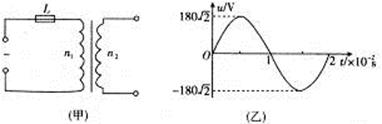 1、选择题 如图(甲)所示,理想变压器的原线圈电路中装有0.5 A的保险丝L,原线圈匝数n1=600,副线圈匝数n2=120.当原线圈接在如图(乙)所示的交流电源上,要使整个电路和用电器正常工作,则副线圈两端可以接