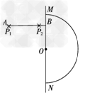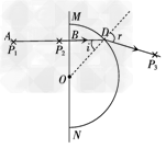 参考答案:(1)光线P1P2垂直于界面进入半圆柱形玻璃砖后到达圆弧面MN上发生全反射现象;向上