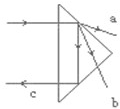 3、选择题 主截面为等边三角形的三棱镜,临界角为45°,光线从它的一面垂直入射,在图所示的a,b,c三条出射光线中正确的是( )