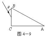 2、计算题 (12分)如图4-9所示,一个横截面为直角三角形的三棱镜,?A=30°,?C=90°.三棱镜材料的折射率是 n=