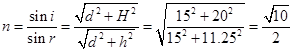1、计算题 如图所示,一储油桶,底面直径与高均为1m。当桶内无油时,从某点A恰能看到桶底边缘上的某点B。当桶内油的深度等于桶高的一半时,由点A沿方向AB看去,恰能看到桶底上的点C,两点C、B相距0.25m。求油的折射率和光在油中的传播速度。
