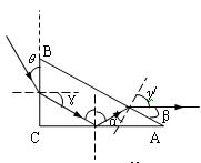 。一条与BC面成θ=30°角的光线射向BC面,经过AC边一次反射从AB边射出。