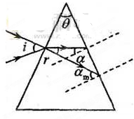 2、计算题 一玻璃三棱镜,其截面为等腰三角形,顶角θ为锐角,折射率为