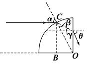 本题解析:设入射光线与1/4球体的交点为C,连接OC,OC即为入射点的法线。因此,图中的角α为入射角。过C点作球体水平表面的垂线,垂足为B。依题意, ,又由