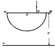 2、计算题 如图所示,一玻璃砖的横截面为半圆形,MN为截面的直径,Q是MN上的一点且与M点的距离QM=R/2 (R为半圆形截面的半径与水平光屏P平行,两者的距离为d,一束与截面平行的红光由 Q点沿垂直MN的方向射入玻璃砖,从玻璃砖的圆弧面射出后,在光屏上得到红光。玻璃砖对该红光的折射率为n=