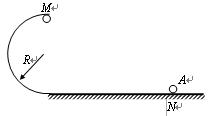 3、计算题 (10分)如图所示,竖直放置的半径R=80cm的圆轨道与水平轨道相连接。质量为m=50g的小球A以一定的初速度由直轨道向左运动,并沿圆轨道的内壁运动到最高点M,如果球A经过N点时的速度vN=8m/s,经过M点时对轨道的压力为0.5N。求:小