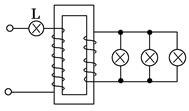 4、选择题 如图所示,一理想变压器初次级线圈的匝数比为3∶1,次级接三个相同的灯泡,均能正常发光,初级线圈中串有一个相同的灯泡L,则 ( )