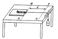 3、实验题 某同学设计了如图所示的装置来探究加速度与力的关系。弹簧秤固定在一合适的木板上,桌面的右边缘固定一支表面光滑的铅笔以代替定滑轮,细绳的两端分别与弹簧秤的挂钩和矿泉水瓶连接。在桌面上画出两条平行线MN、PQ,并测出间距d。开始时让木板置于MN处,现缓慢向瓶中加水,直到木板刚刚开始运动为止,记下弹簧秤的示数F0,以此表示滑动摩擦力的大小。再将木板放回原处并按住,继续向瓶中加水后,记下弹簧秤的示数F1,然后释放木板,并用秒表记下木板运动到PQ处的时间t。