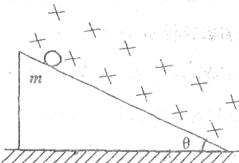 ,斜面上方有一垂直纸面向里的匀强磁场,磁感应强度为B,现有一个质量为m、带电量为+q的小球在斜面上被无初速度释放,假设斜面足够长,则小球从释放开始,下滑多远后离开斜面?