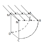 的玻璃柱体,其横截面是圆心角为90°。半径为R的扇形NBC。该柱体厚度为h,即MN=DC=AB=h。一束刚好覆盖ABNM面的单色光,以与该面成450角的方向照射到ABNM面上。若只考虑首次入射到ABCD面上的光,则ABCD面上有光透出部分的面积为( )