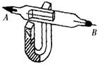1、填空题 如图所示,电子射线管(A为阴极),放在蹄形磁铁的N、S两极间,射线管的A、B两极分别接在直流高压电源的__________极和__________极。此时,荧光屏上的电子束运动径迹__________(填“向上”“向下”或“不”)偏转。