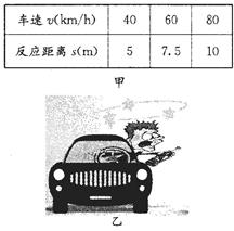 (1)甲为《驾驶员守则》中驾驶员的部分正常反应距离(汽车在反应时间内通过的距离)表格。请选取表格数据计算驾驶员的正常反应时间;