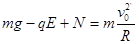 2、计算题 如图所示,质量为m、半径为R的圆形光滑绝缘轨道放在水平地面上固定的M、N两竖直墙壁间,圆形轨道与墙壁间摩擦忽略不计,在轨道所在平面加一竖直向上的场强为E的匀强电场。P、Q两点分别为轨道的最低点和最高点,在p点有一质量为m,电量为q的带正电的小球,现给小球一初速度V0,使小球在竖直平面内做圆周运动,不计空气阻力,重力加速度为g,若mg> qE,要使小球能通过Q点且保证圆形轨道不脱离地面,速度V0应满足的关系是: