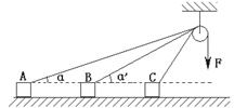 1、选择题 如图所示,用竖直向下的恒力F通过跨过光滑定滑轮的细绳拉动光滑水平面上的物体,物体沿水平面移动过程中经过A、B、C三点,设AB=BC,物体经过A、B、C三点时的动能分别为,则它们间的关系应是( )