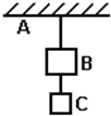 3、选择题 如图所示,不计悬绳的质量,把B和C两物体悬吊在天花板A上,当两物体静止后,下面哪一对力是平衡力( )