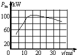 1、选择题 某汽车的最大输出功率与速率的关系如图所示.现在该汽车在平直路面上,从静止开始以0.5m/s2的加速度行驶.设汽车质量为2×103kg,所受阻力恒为3×103N.则汽车能维持该匀加速度行驶的最长时间约为( )