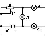 本题解析:等效电路为变阻器与A灯并联后与B灯串联,最后与C灯并联,对于灯A、B:通过A的电流小于B的电流,当两灯泡的功率相同时,由公式