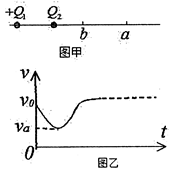 2、选择题 如图甲所示,Q1、Q2为两个被固定的点电荷,其中Q1为正点电荷,在它们连线的延长线上有a、b两点。现有一检验电荷q(电性未知)以一定的初速度沿直线从b点开始经a点向远处运动(检验电荷只受电场力作用),q运动的速度图像如图乙所示。则?(?)